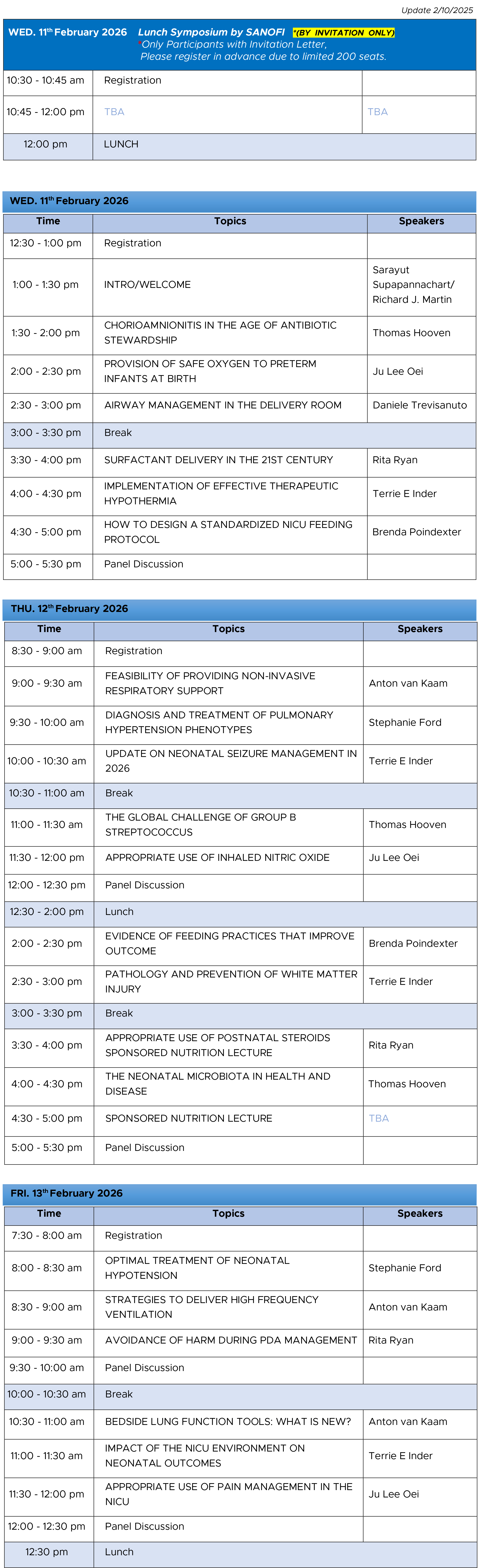 As we convene once again in the dynamic city of Bangkok, we look forward to your active participation in thought-provoking discussions, cutting-edge scientific sessions, and practical workshops led by internationally recognized experts. This year’s program has been designed to not only showcase the latest advancements in neonatology but also to address current challenges, thereby inspiring collective progress in our field.