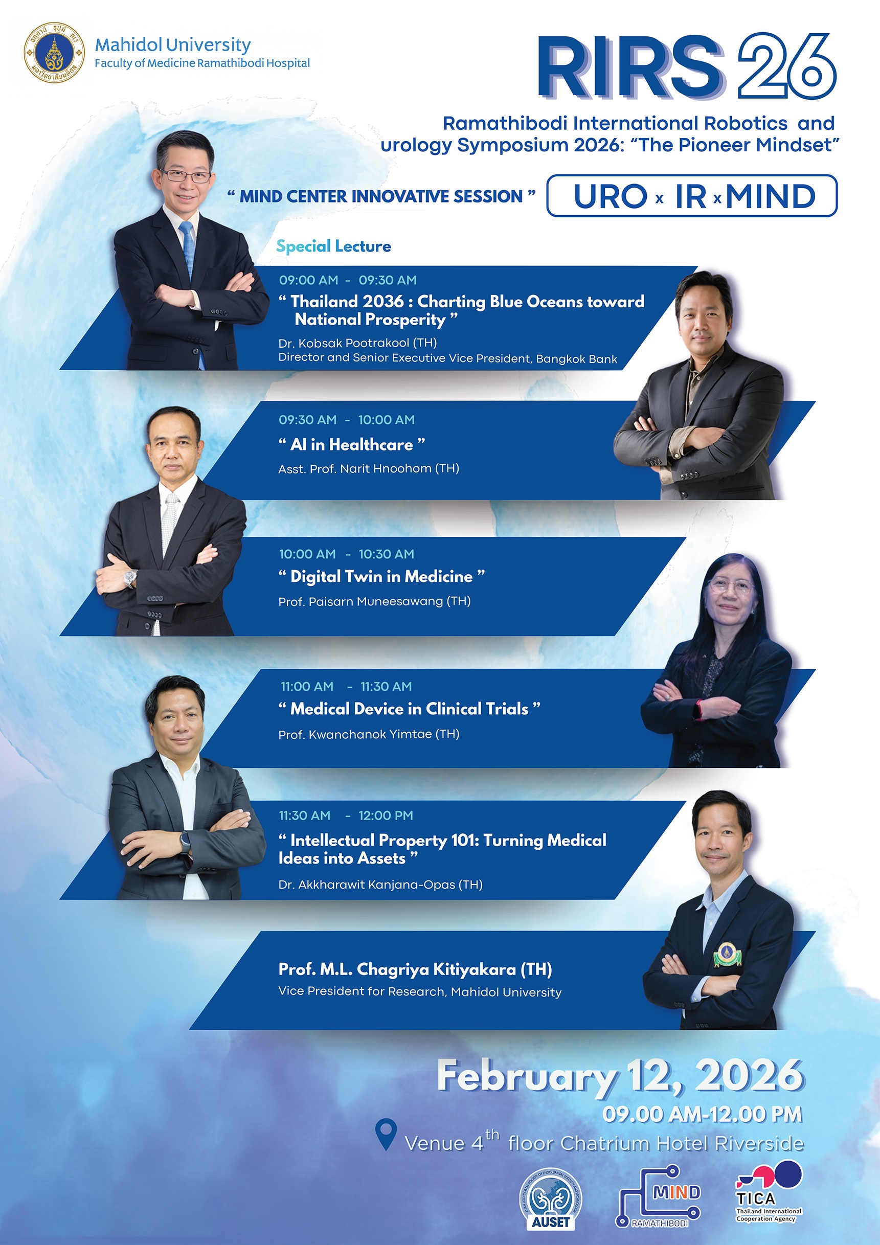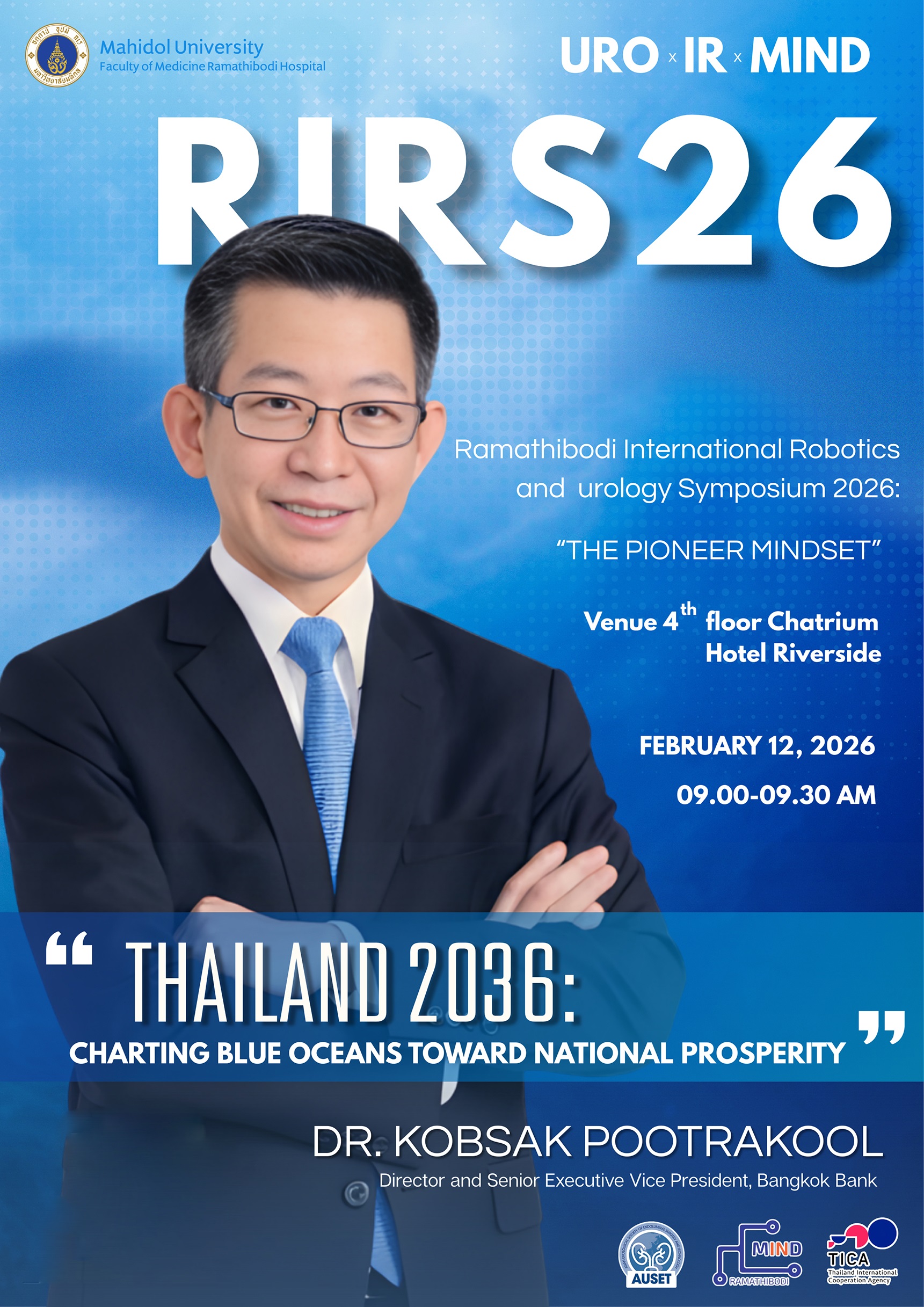 It is with great pleasure and deep appreciation that I welcome you to the Ramathibodi International Robotics and Urology Symposium 2026 (RIRS26), held at the elegant Chatrium Hotel Riverside, Bangkok.